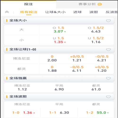 在这里,习惯用 1 X 2 来代表球队的赢平输,这也就是欧洲赔率的三项赛果。因为亚盘的加入,所以最简单的内容反而不那么容易被找到了。但只要用心寻找,你会发现所有你想到或想不到的投注内容,在mibo都有。